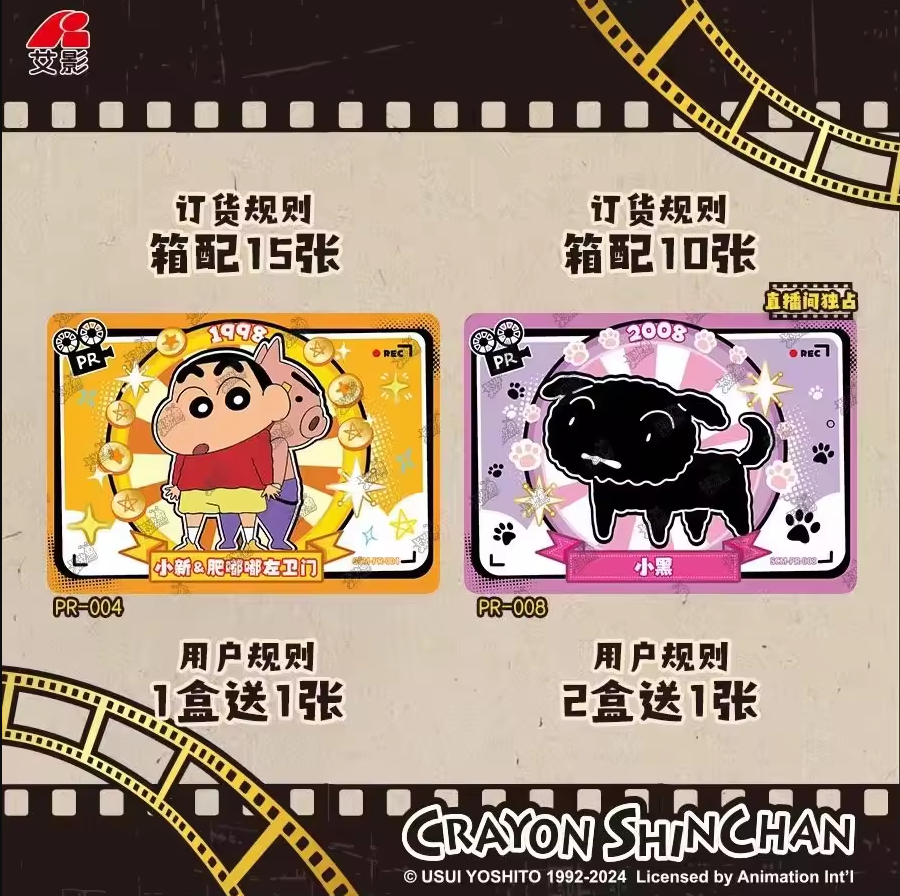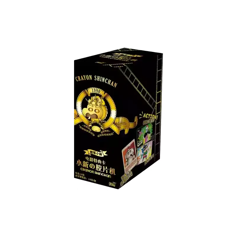 Cinematic Shin-chan Heritage The Crayon Shin-chan Movie Special Card collection pays tribute to the beloved “1990” cinematic legacy. This elegant black booster box features a sophisticated gold-foil reel design, capturing the essence of the franchise’s most iconic big-screen moments in high-fidelity detail.
