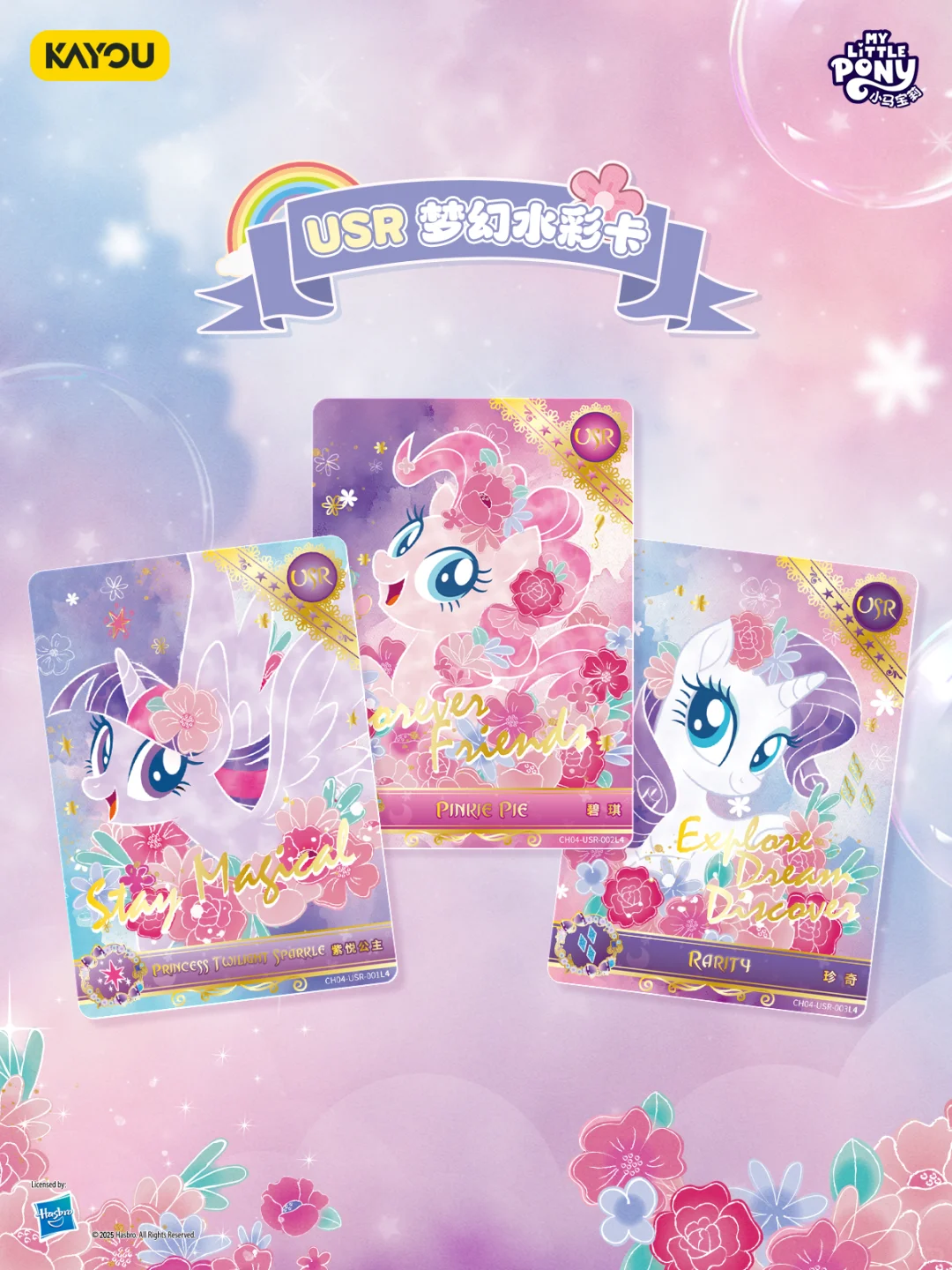 Vibrant Friendship Artistry The Kayou My Little Pony Rainbow (彩虹版) series brings the magic of Equestria to life through the MLP Friendship Forever card lineup. Featuring high-fidelity group art of the Mane Six, this collection captures the colorful essence of friendship with vibrant rainbow-themed designs and a playful “Ponyville” aesthetic.