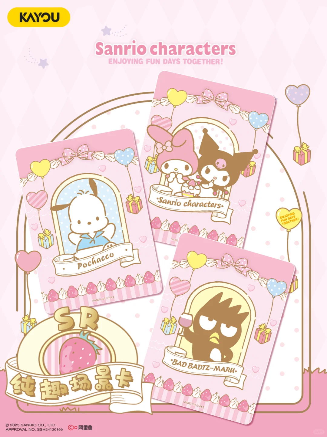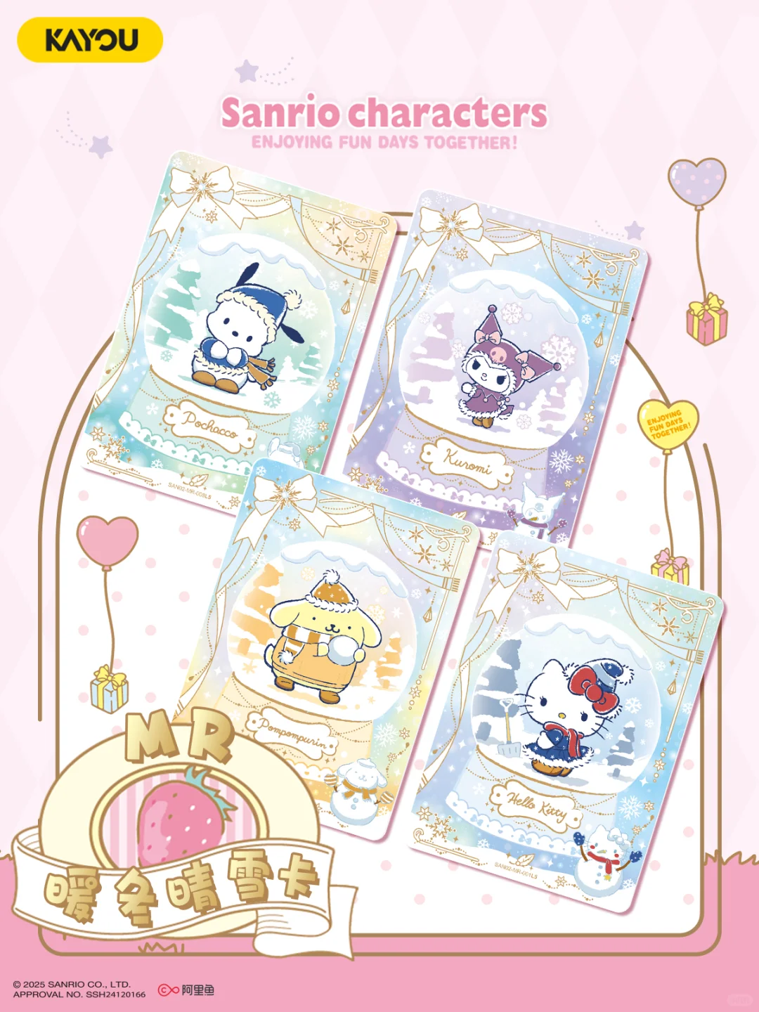 Pastel Dreams and Sweet Friendships The KAYOU Sanrio Mengmeng cards collection offers a high-fidelity look into the “Kawaii” world of Sanrio’s most beloved characters. This series, titled “Mengmeng” (萌萌), features a soft, pastel pink aesthetic that perfectly complements the playful nature of Hello Kitty, My Melody, and Cinnamoroll.