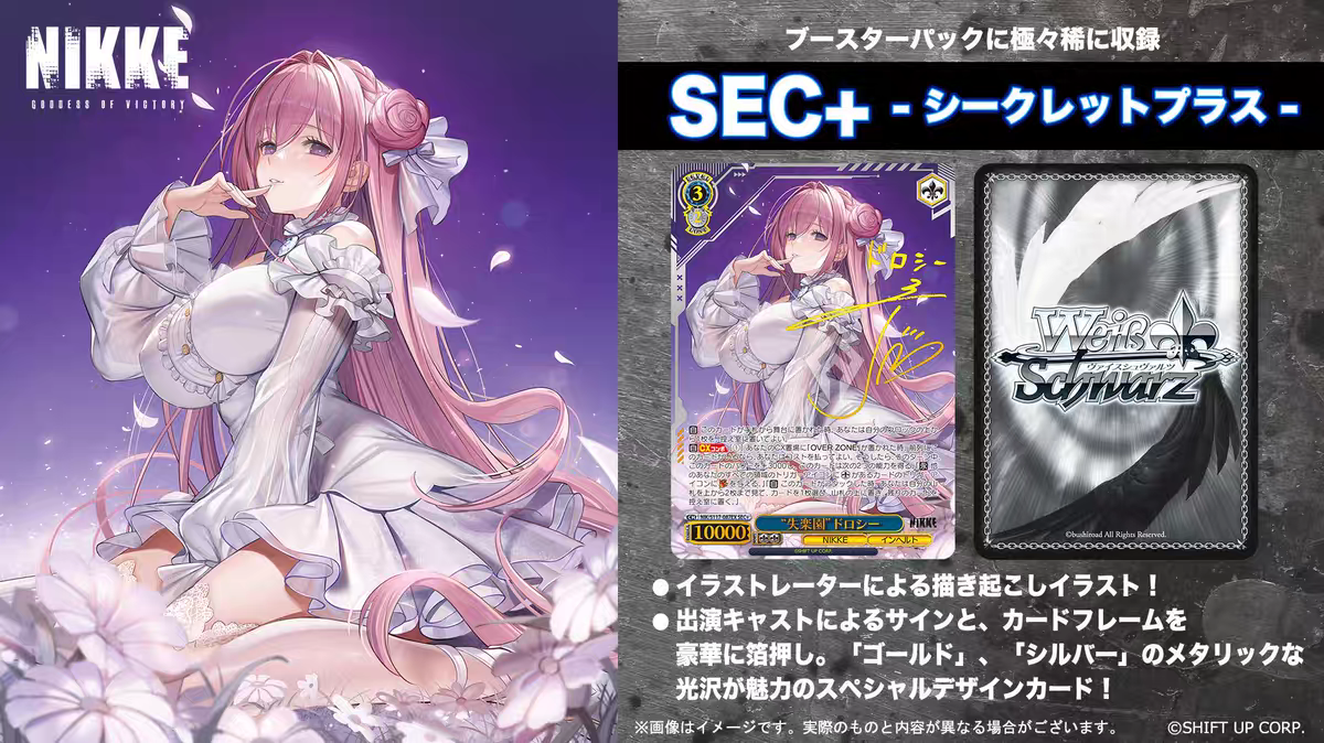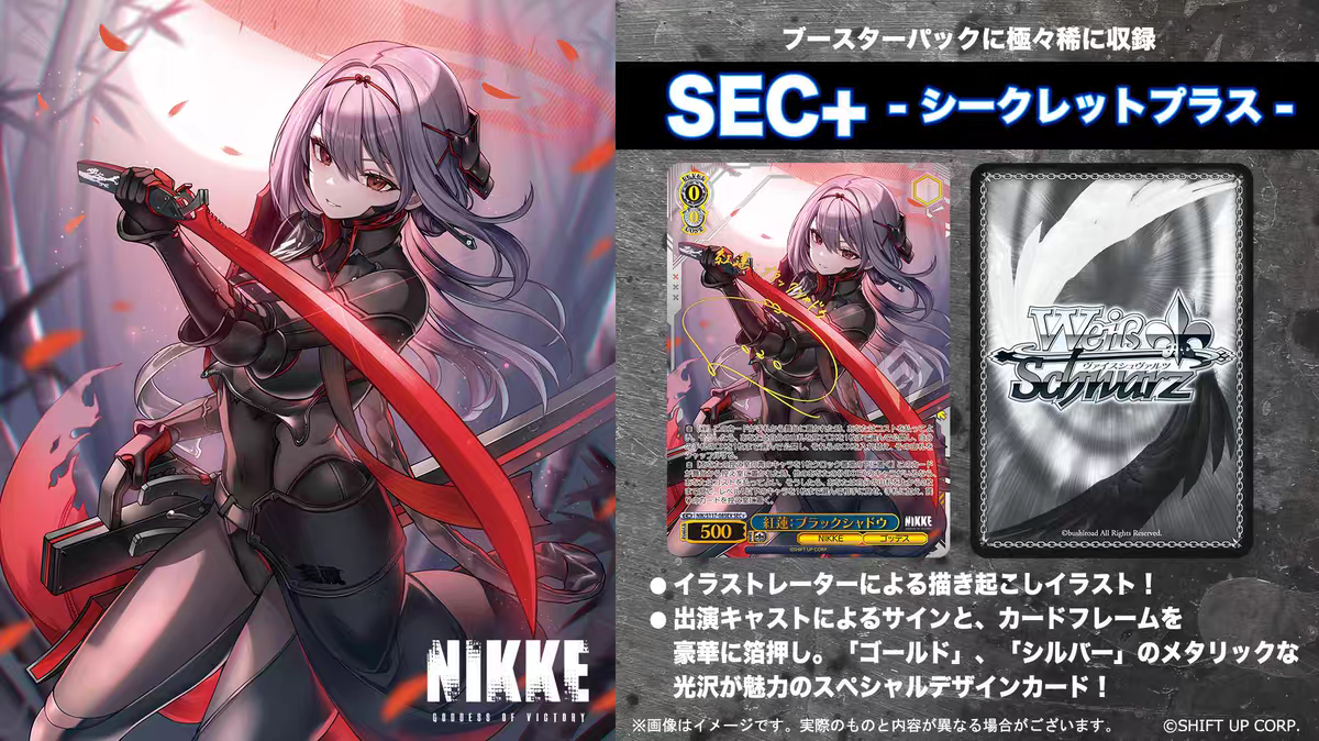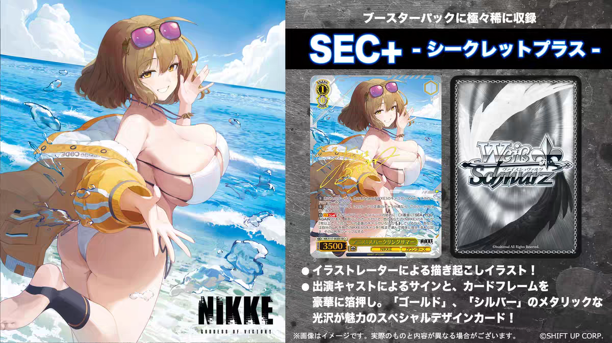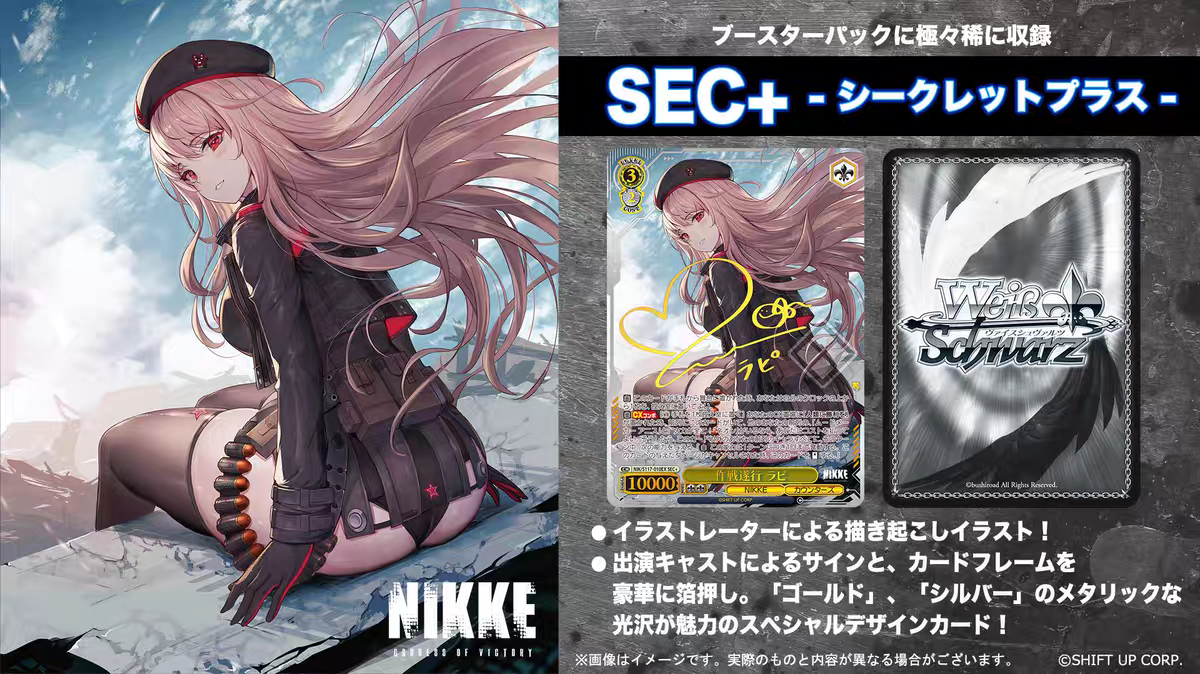 Tactical Commander Experience The WS NIKKE Goddess Of Victory TCG brings the high-octane mobile RPG experience to the Weiss Schwarz tabletop. Fans of the game can now collect their favorite Nikkes, from the counters squad like Rapi and Anis to powerful Pilgrims, all rendered in stunning detail.