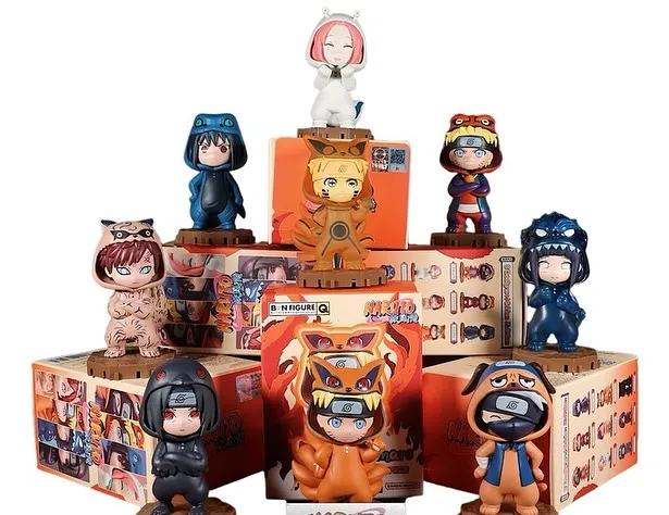 A: These are hybrid Naruto animal onesie plush toys that feature high-quality plush fabric outfits on a collectible figurine base.
