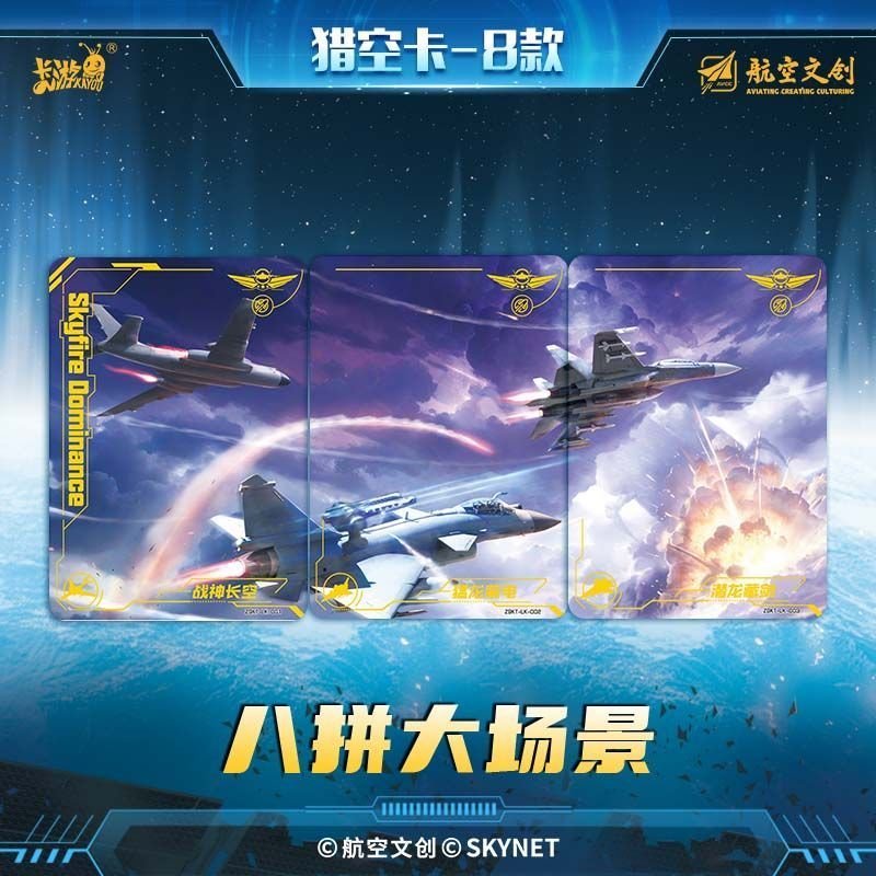A: Yes, the KAYOU Winning Sky series booster box highlights the full spectrum of aerospace, including famous fighter jets like the J-16 and commemorative astronaut cards.