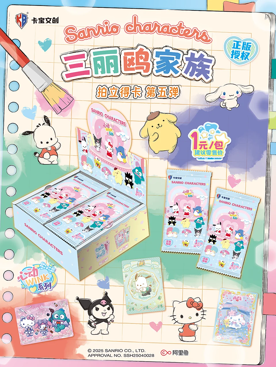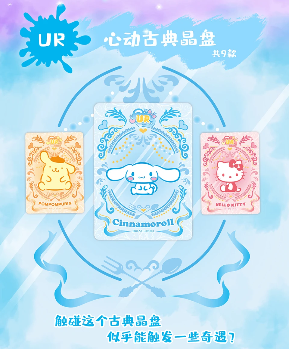 For collectors of the KABAO Sanrio collectible card set, this 5R#1 wave offers a vast array of rarities to discover. The roster includes a full lineup of favorites, including Hello Kitty, Cinnamoroll, My Melody, Kuromi, Pompompurin, and many more. These Sanrio anime character wink cards are printed on premium cardstock with a smooth finish, making them perfect for both casual collecting and organized album displays.