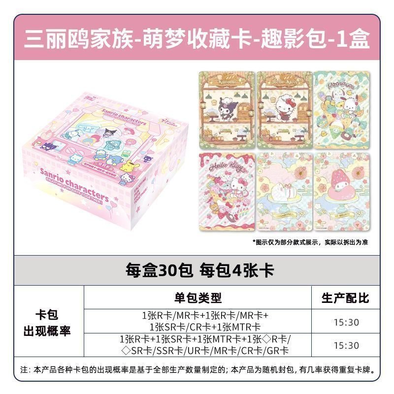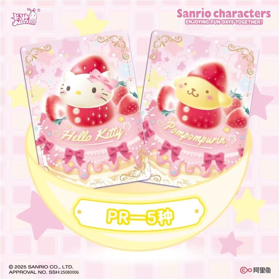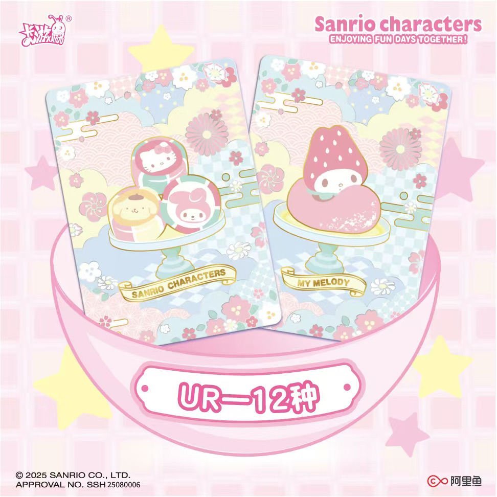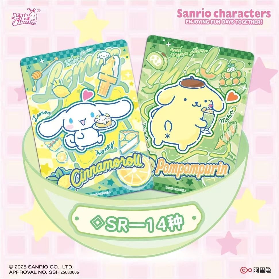 Pastel High-Fidelity Sweetness KAYOU Sanrio characters cards “Honey Frosting” (蜜糖霜花) brings the whimsical world of Sanrio to life with high-fidelity artistry. This “Mengmeng Fun Shadow” series features beloved icons like Kuromi, My Melody, and Hello Kitty in a soft, dessert-inspired aesthetic rendered on premium card stock with specialized holographic finishes.