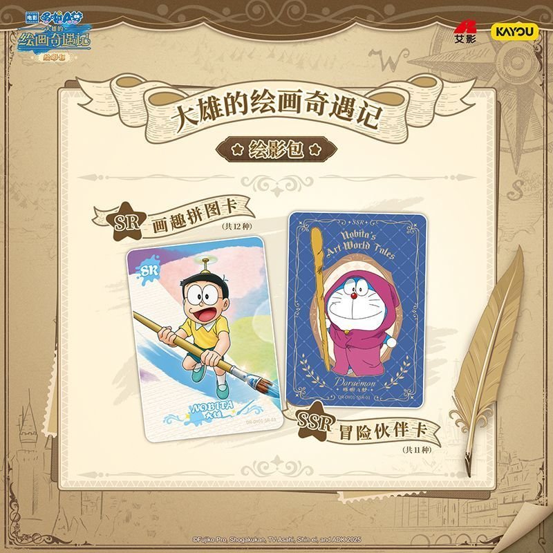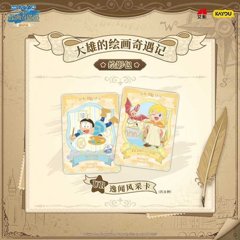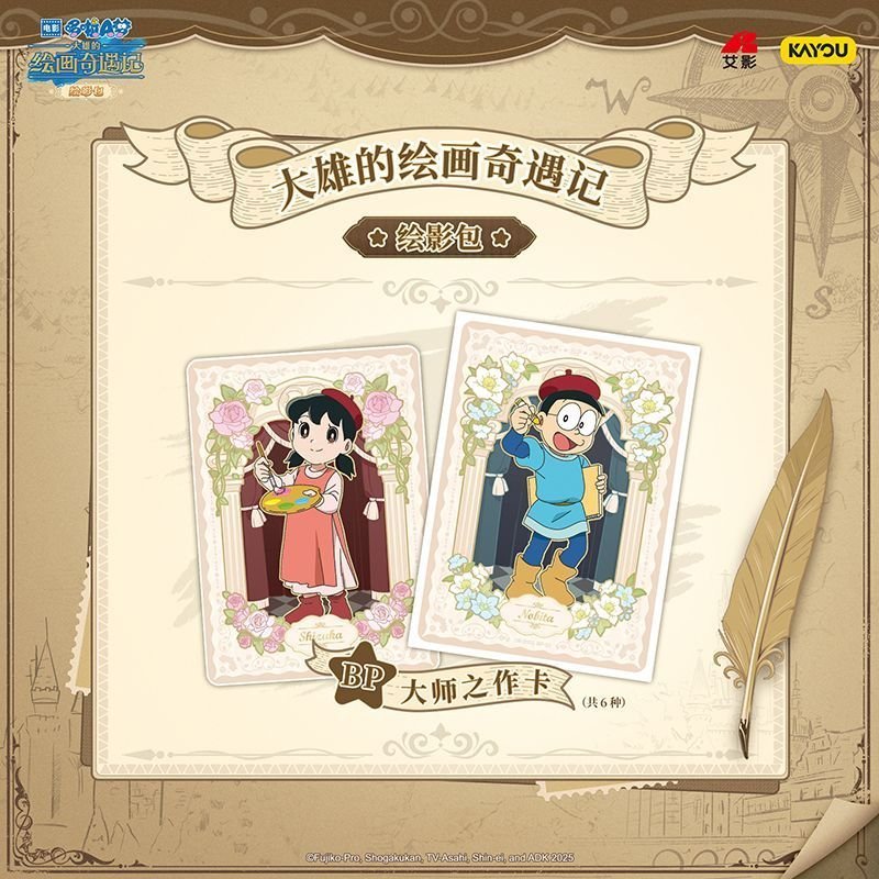 This KAYOU Doraemon’s Painting Adventure Shadow Pack Movie Merchandise Collection Card set includes elite rarity foils and specialized movie-themed inserts for dedicated fans. Combining high-quality card stock with iconic character art, it is an essential piece for any serious KAYOU collector and hobbyist.