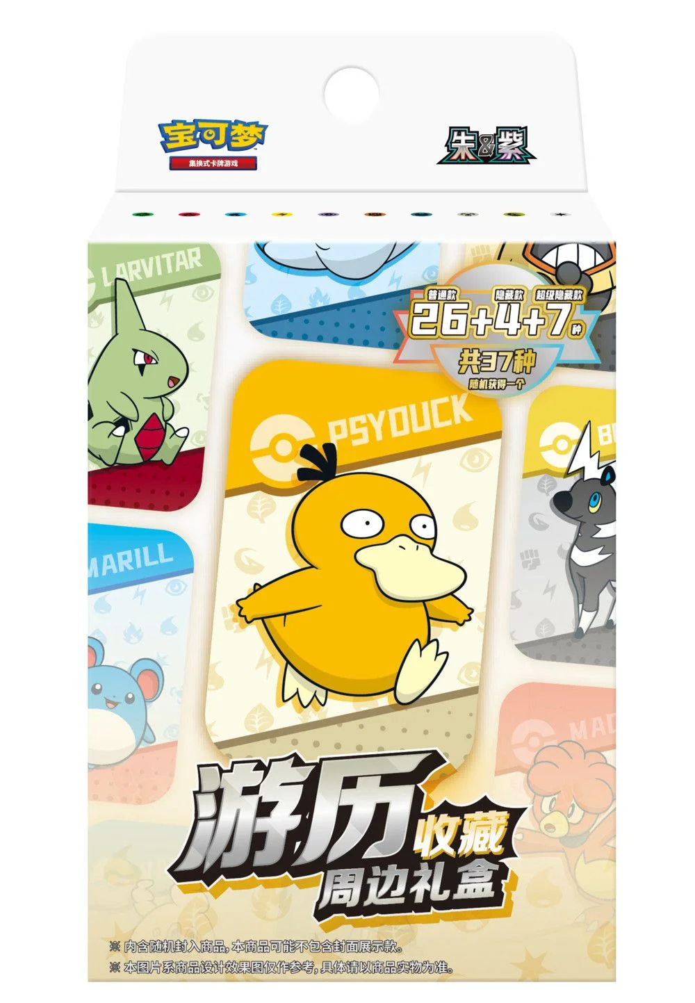 Presented in a clean, white-themed retail box, this “Travel Collection” (游历收藏) series focuses on the whimsical charm of the region, prominently featuring the ever-popular Psyduck alongside a colorful cast of companions.