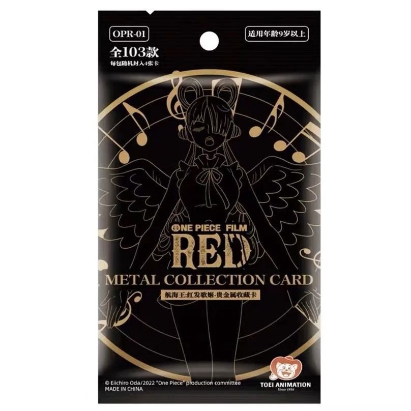The One Piece Film Red Metal Collection Card series is distinguished by its heavy-weight metal construction and striking aesthetic.