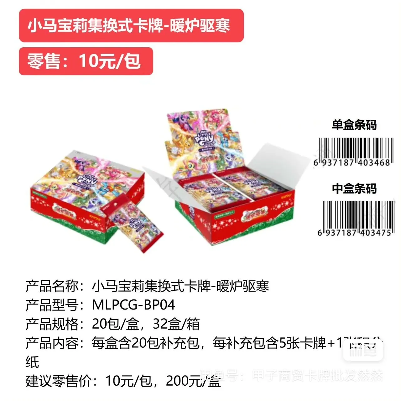 Elite TCG4 Seasonal Archive Housed in a 30-pack booster box, this “Hearth’s Warming” (冬日节) series is a definitive archive for dedicated collectors. The set is distinguished by its rare 10r #4 inserts, which feature specialized foiling and character profiles on the back, making it a cornerstone for those tracking the chronological evolution of the KAYOU My Little Pony CCG.