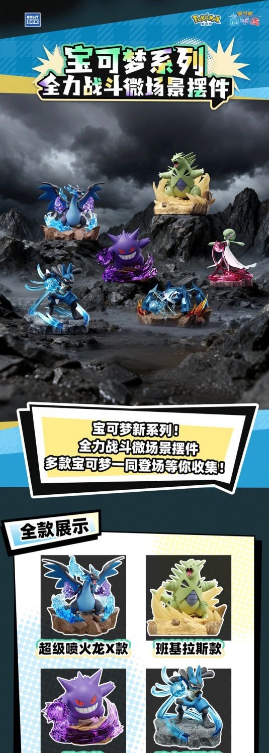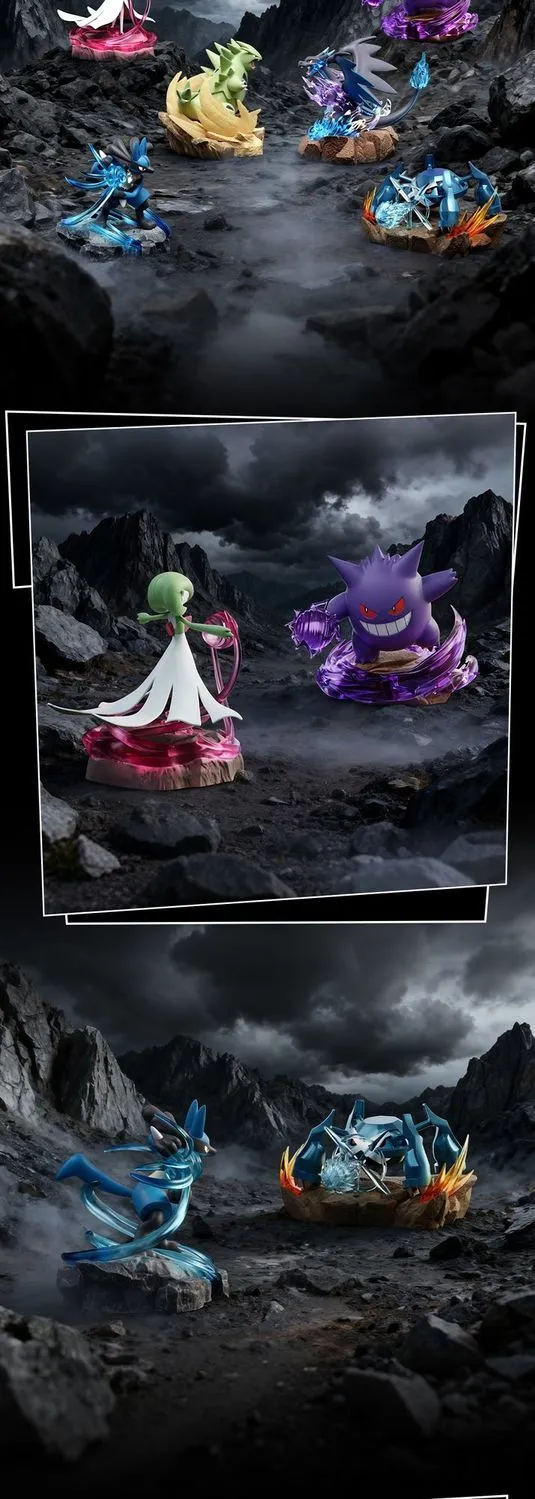 The Pokémon Intense Battle Diorama Figurine Gift Box features premium 3D craftsmanship with high-definition battle poses of Charizard, Lucario, and Gengar. Each figurine utilizes vibrant elemental effects and detailed rocky terrain bases for a superior aesthetic finish.