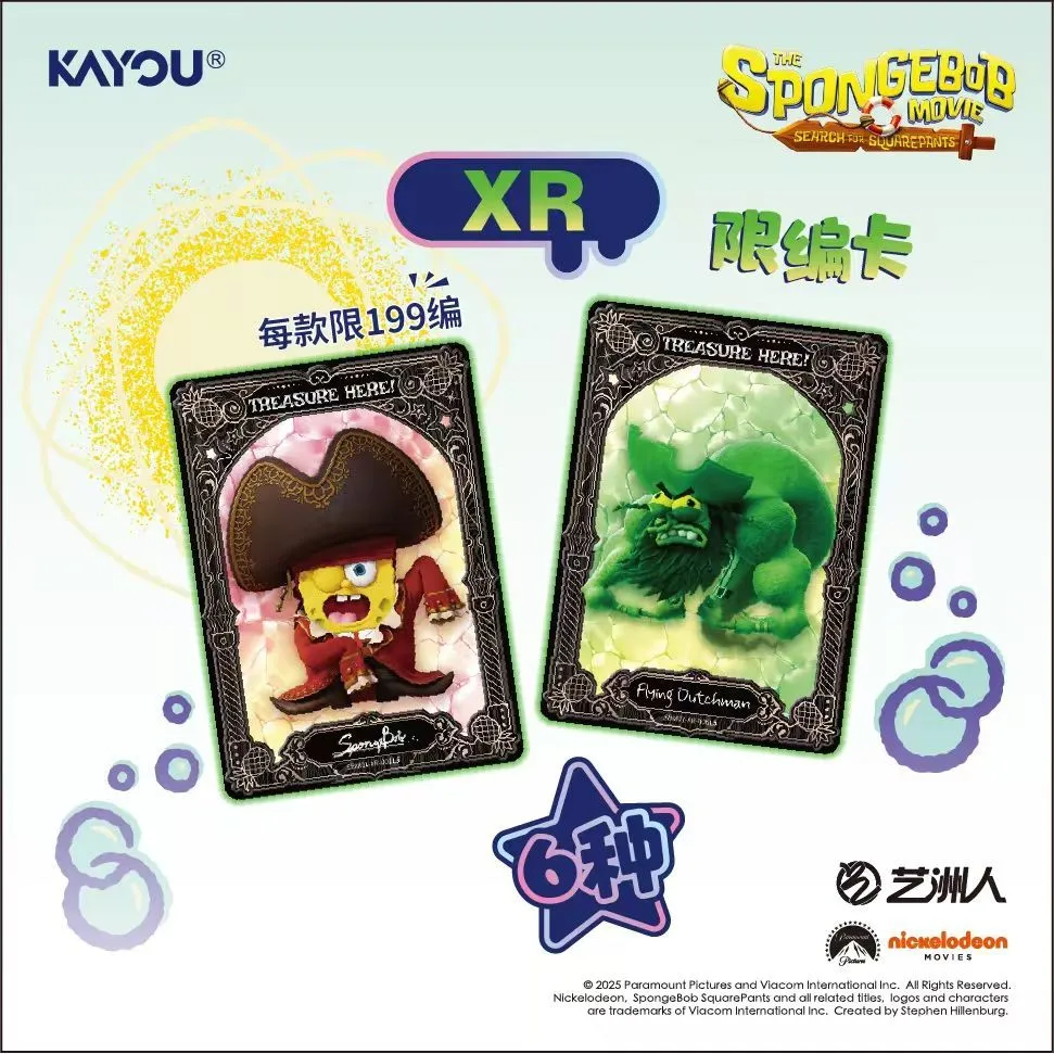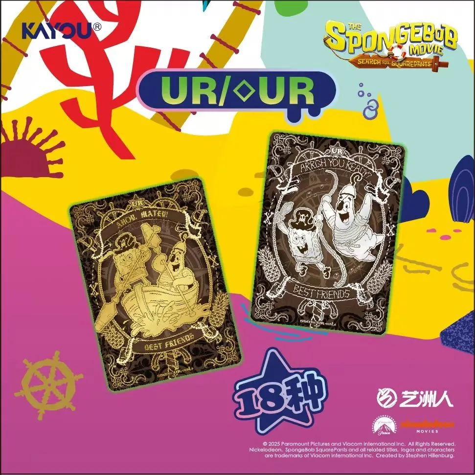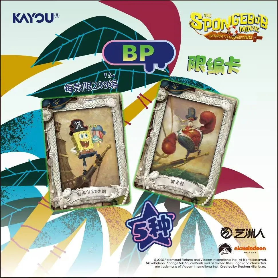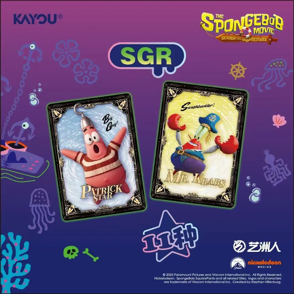 Bikini Bottom High-Fidelity Adventure The KAYOU SpongeBob cards “Fun Time Chasing The Waves Together” (妙趣时光-浪遏飞舟) collection brings the colorful energy of the ocean to life with high-fidelity artistry. This set captures iconic moments from The SpongeBob Movie, featuring SpongeBob, Mr. Krabs, and the gang in vibrant, sun-soaked beach scenes rendered on premium card stock.