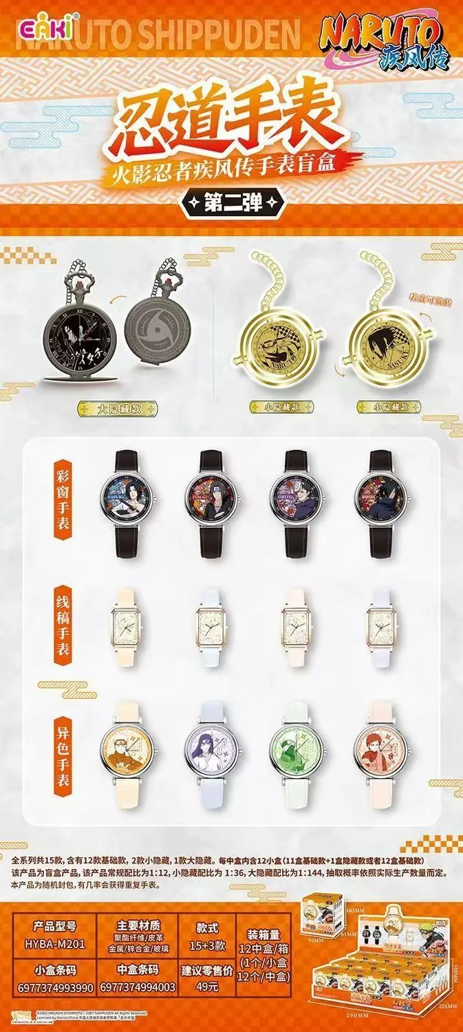 The EAKI Naruto Watch Shippuden Ninja Way Blind Box #2 features premium craftsmanship with high-definition character illustrations on every watch face. This specialized second collection utilizes a vibrant orange-themed display box design with exclusive Ninja Way motifs to celebrate the iconic legacy of the Hidden Leaf Village.
