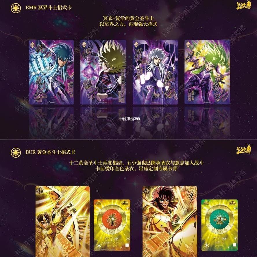 As part of the prestigious 10r series, this KAYOU Saint Seiya Saint Cloth Awakening Collection Card set offers superior printing quality and exclusive rarities. Collectors can expect to find intricate cold-foil details and 3D embossing that bring the Gold Saints and powerful God Cloths to life with unparalleled brilliance.